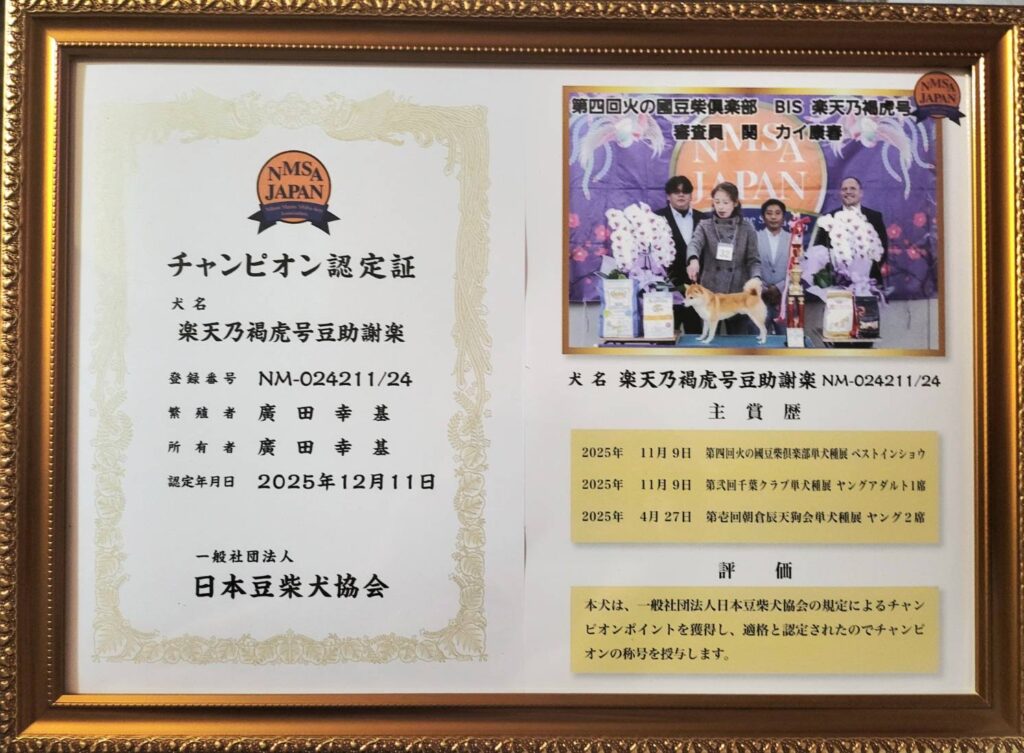 | 2025年11月9日 | 第四回火の國豆柴倶楽部 単犬種展 ベストインショウ |